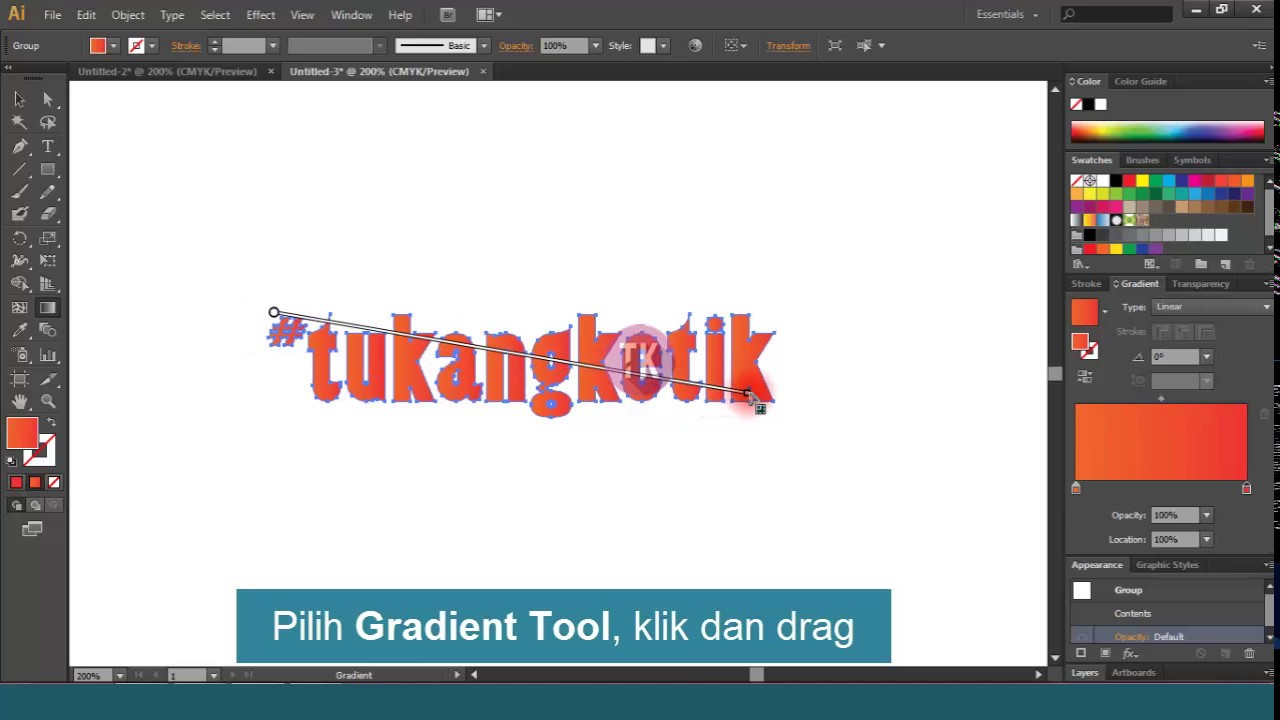 Video Tutorial Adobe Illustrator Membuat Efek Teks 3d Dengan Gradasi Warna Dan Cahaya