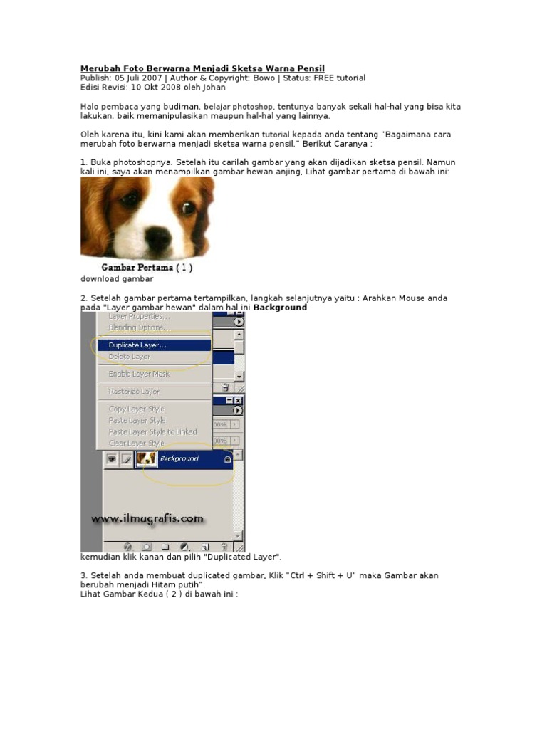 Tutorial Photoshop Merubah Foto Berwarna Menjadi Sketsa Warna Pensil