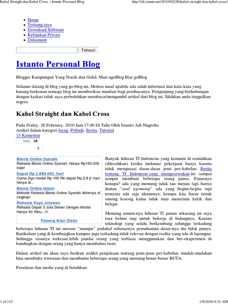Susunan Kabel Straight Dan Crossover Yang Benar Sesuai Standar