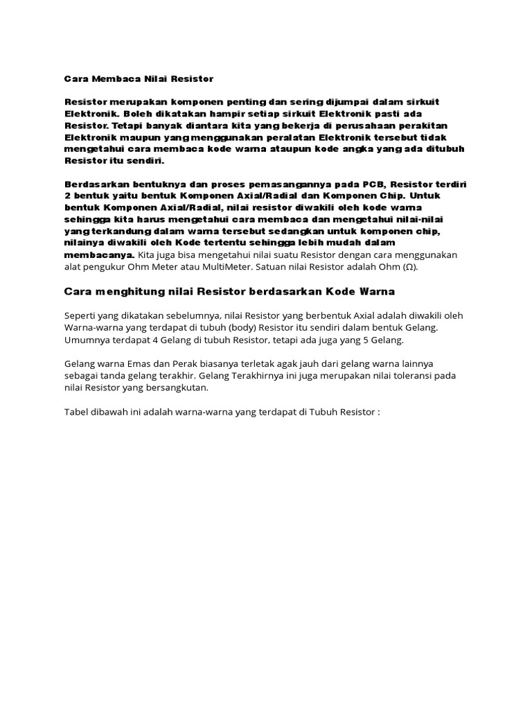 Cara Menghitung Nilai Resistor Dan Tabel Warna Resistor