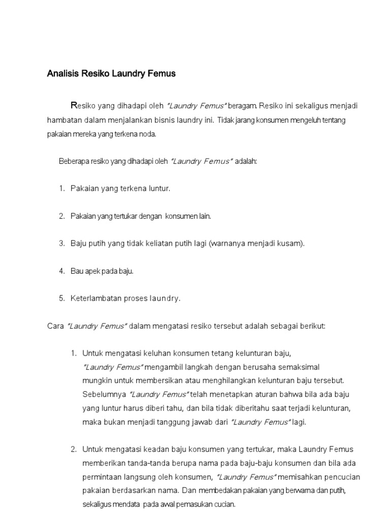 Analisis Resiko Laundry Femus Skb