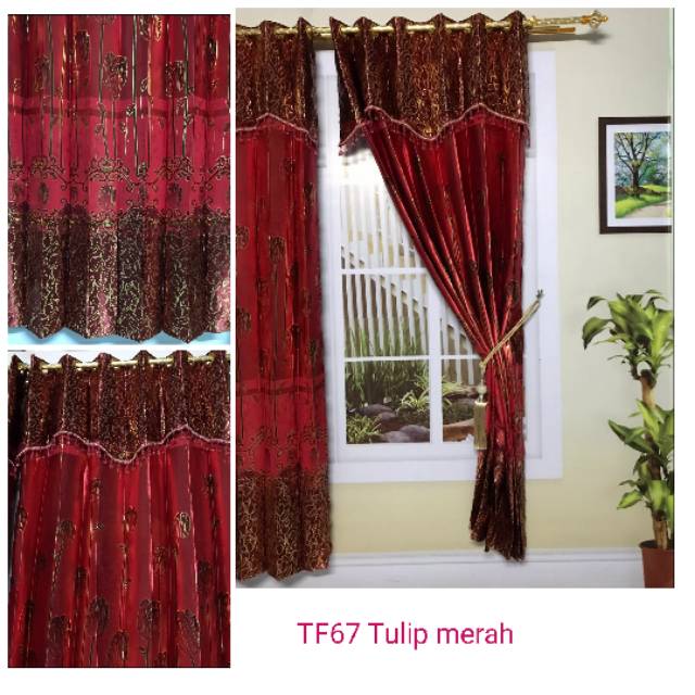 Gorden Blackout Promo Korden Smokering Korden Minimalis Tirai Jendela Motif Tf67 Tulip Merah