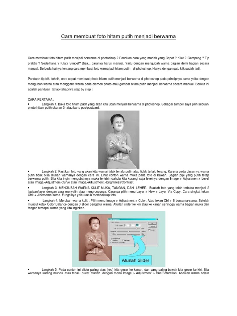 Selain bisa membuat foto menjadi lebih keren photoshop juga dilengkapi dengan berbagai fitur yang lengkap untuk merekayasa gambar sesuai dengan keinginan kita. Tutorial yang memperlihatkan beberapa cara untuk membuat foto berwarna menjadi hitam putih dengan menggunakan adobe photoshop. Cara membuat foto hitam putih menjadi foto berwarna dengan photoshop langkah 1 bukalah sebuah foto hitam dan putih jadul dan kuno seperti foto bintang film artis jadul dan usahakan foto tersebut memiliki resolusi tinggi dengan tingkat ketajaman gambar yang jelas.
