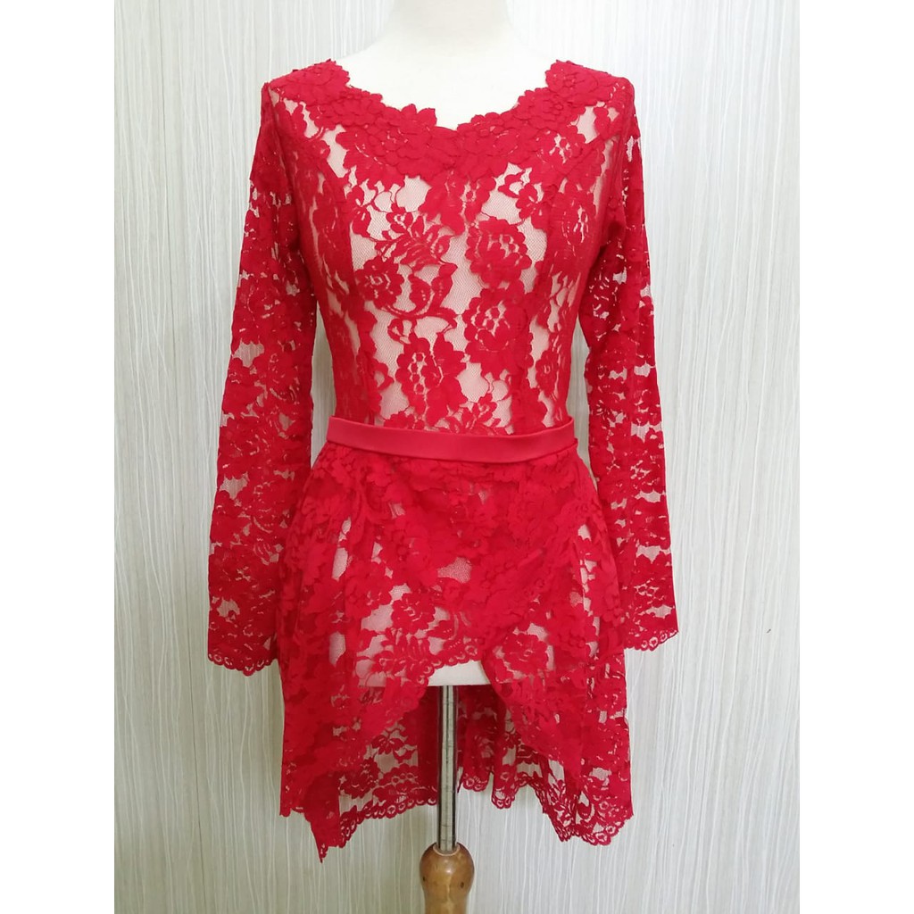 Kebaya Modern Lengan Panjang Brokat Kebaya Wisuda Handayani Rr1886 Merah Arcobaleno Solo Kebaya