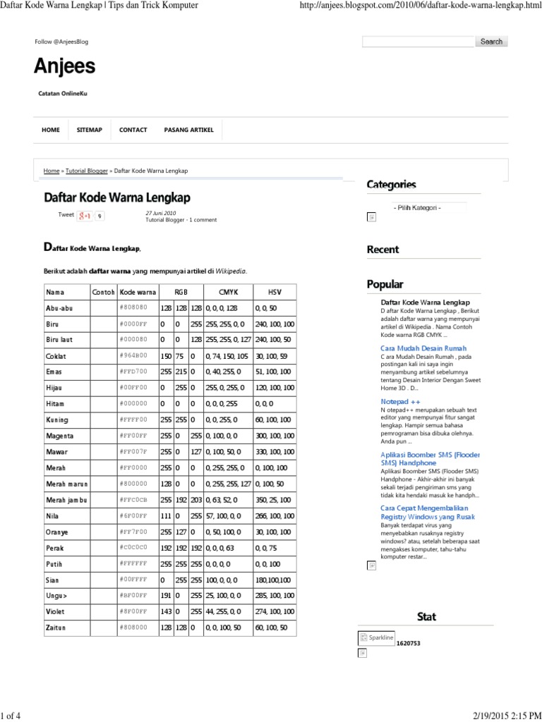 Daftar Kode Warna Lengkap Tips Dan Trick Komputerpdf