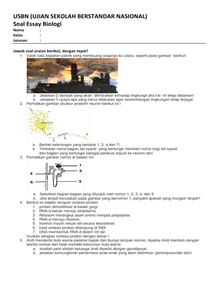 Usbn Ujian Sekolah Berstandar Nasional Soal Essay Biologi
