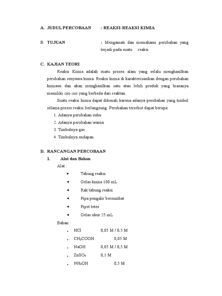 Laporan Praktikum Kimia Dasar 1 Reaksi Reaksi Kimia Update 2017