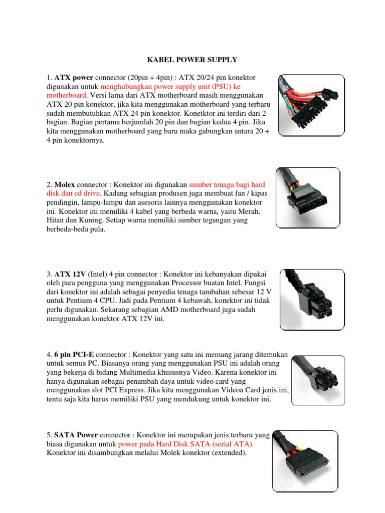 Jenis Jenis Konektor Pada Power Supply Pintar Komputer