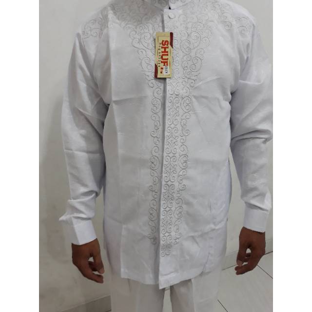 Gudang Fashion Baju Koko Putih Motif Bordir Lengan Panjang Putih
